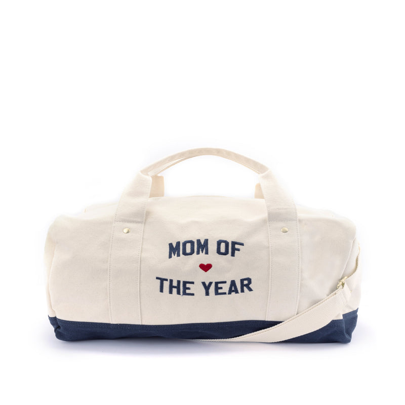 For the mom who does it all. Our durable canvas duffle with an adjustable strap and navy base is made for daily drop-offs, gym sessions and everything in between. Reliable, roomy, and always ready to go.